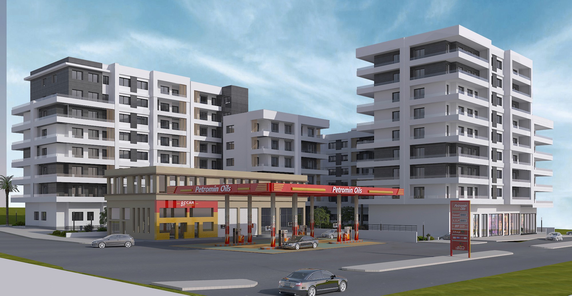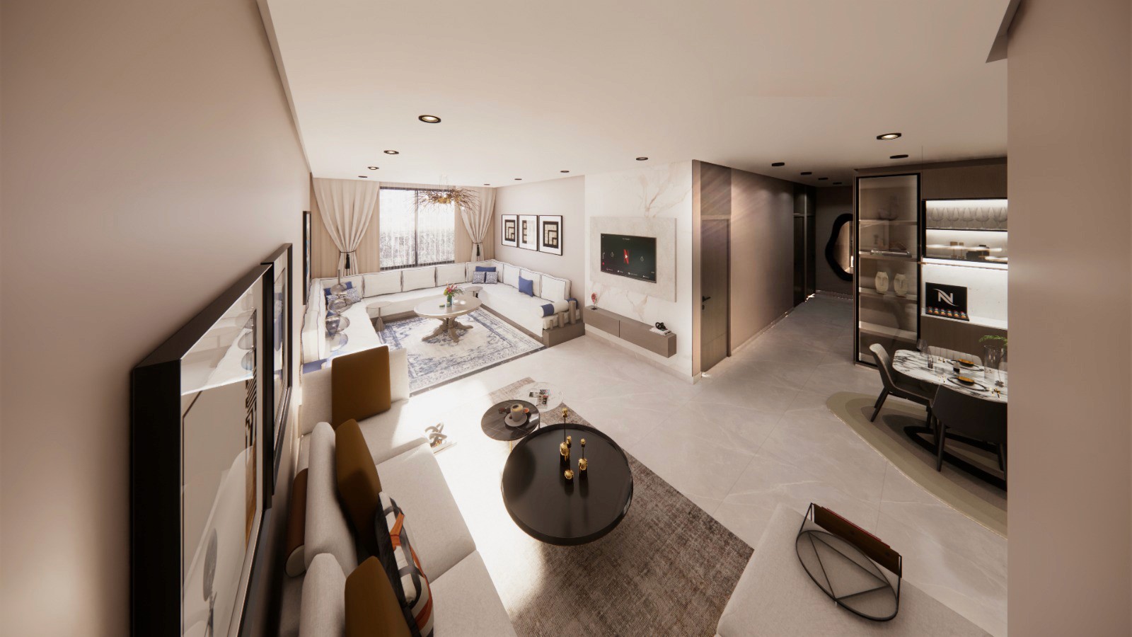 Appartement 3 chambres + salon, avec vues panoramiques sur deux côtés pour une luminosité naturelle optimale. Finitions en marbre de qualité, isolation phonique et thermique soignée, et matériaux premium pour un confort et un raffinement incomparables.